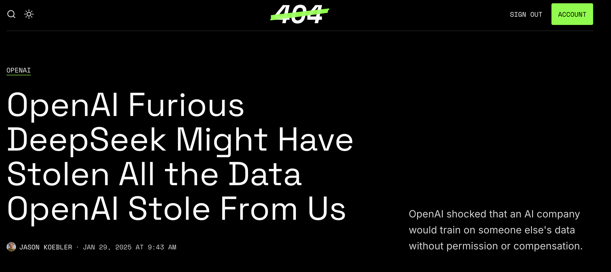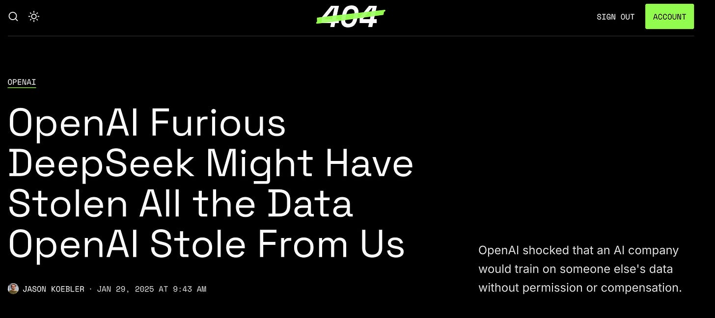 OpenAI maintains that scraping and training their models on this data is indeed fair use. However, they were absolutely furious when they found out DeepSeek was trained on outputs from OpenAI’s models, revealing that they support protections for the output of AI models, but not for the outputs from *actual* human beings.